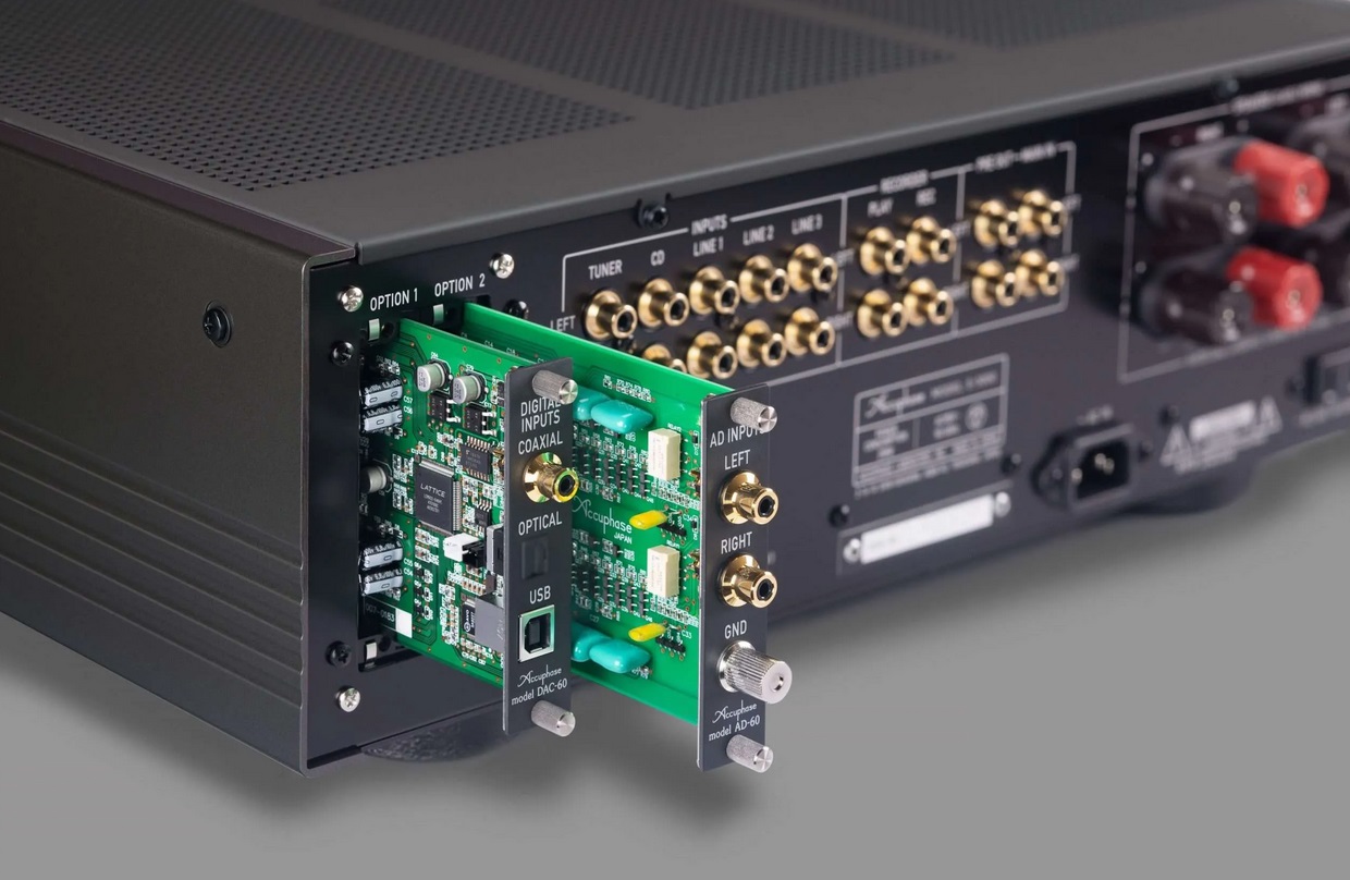 Il peut recevoir en option des cartes enfichables DAC ou phono MM & MC.